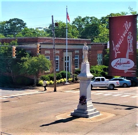 One of my favorite views is from the room on the northeast corner. From there I looked out over Main Street and Columbus. Across the way is the post office and the old soldier’s monument. You can almost reach out and touch it. It has been rumored that Pink Cagle, a master mason, was the model for the soldier that stands atop the monument.