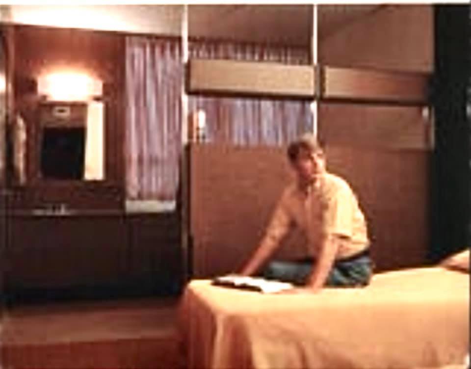 Shortly after I had drifted off I was awaken by the sound of the door at the end of the closet rattling open. There was enough light filtering in from the courtyard that I could tell it was Frankie. My first thought was that the guy with the golden card had had a little too much to drink that night. I mumble something about this room was occupied. Still, he continued crawling towards me from the bottom of the closet.