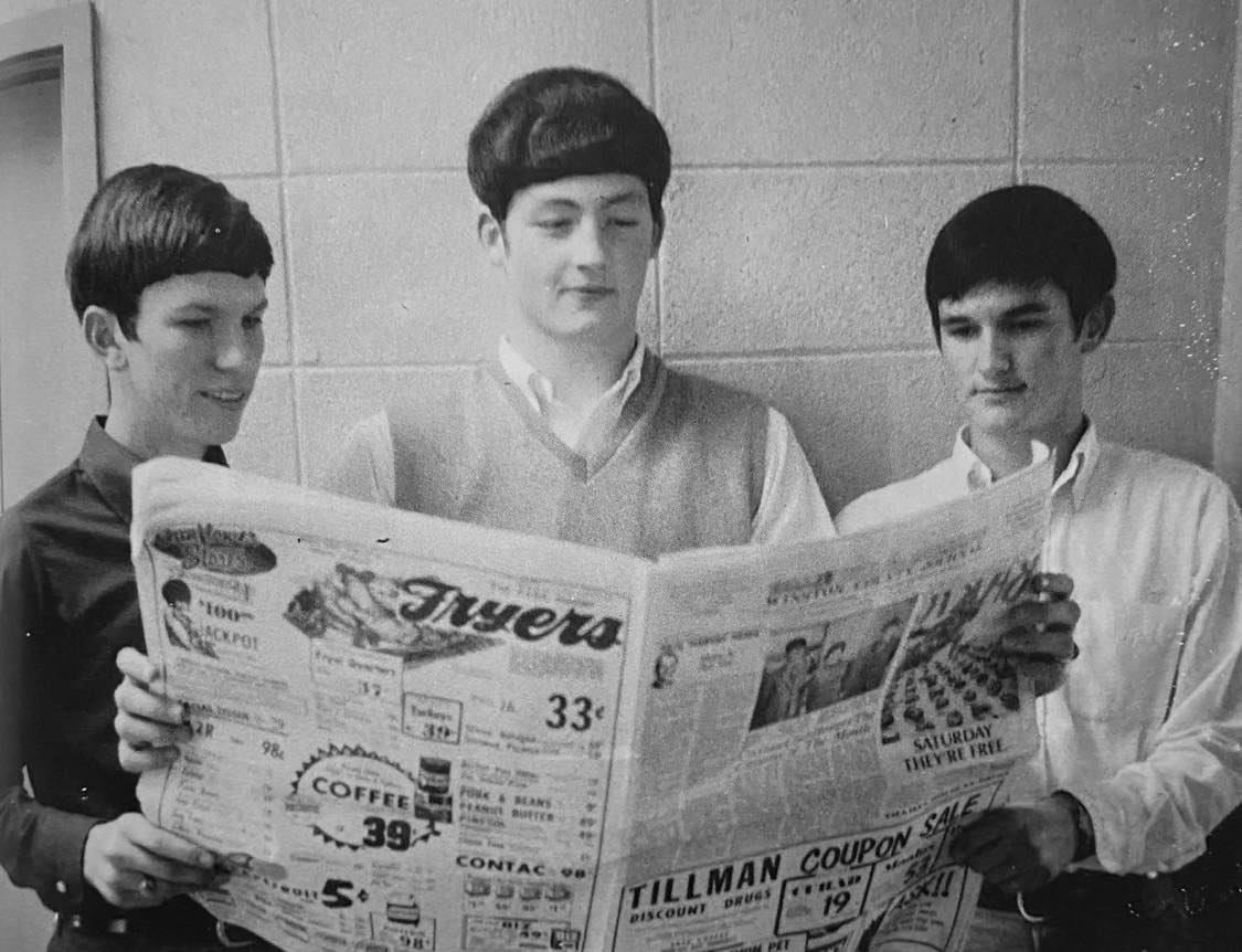 It became evident to the school’s superintendent during my senior year that it would be the last year the school would be segregated. It appeared Jim Crow was dying. We already had a few black children attending in lower grades, even a few in high school, but our senior class was to be the last fully segregated class. I suppose the powers that be didn’t know what to expect in the future or they were afraid of what would happen when the county schools fully integrated, so they began to throttle back on clubs and other organizations that year. The LHS Review was among the programs that were axed. The yearbook staff was the only organization I am aware of that remained in tack. Our paper staff sponsor was livid, but there was nothing she could do. The decision had been made by folks way above her pay grade. They pulled the plug on our school paper. By then I had taken over my middle brother’s job at Jones Men’s Wear after he graduated and went off to Millsaps in the fall of 1967. I earned a whopping four dollars a day, plus one half of one percent commission on everything I sold. Most of my earnings were spent purchasing clothes the owner sold me at a discount. So I never had much money. One day I was sitting in Coach Oakley’s science class when he said it was time to clean the aquarium. There were a few goldfish and some guppies swimming around in the murky water, nothing more. At the bottom someone had placed a small coffee creamer cup that had come from a café in town. Kids would drop coins into the aquarium and watch them trickle down, hoping to land one in the creamer cup sitting on the bottom of the tank. At the time Coach Oakley was going to clean the aquarium there was a nice pile of coins lying on the bottom. Some kid asked, “Hey Coach, what are you going to do with all the money in there?” I had been eyeing all that change lying there for some time. I had estimated it was at least two Saturday’s pay just lying on the bottom. Suddenly the coach said, “I tell you what I’ll do. I’ll give it to the first one of you that’ll come up here and eat one of these guppies live.” While the girls were still groaning and the guys were laughing I was on my feet and heading to the front of the classroom. I grabbed that little fish net hanging beside the tank, dipped it in and came up with a bunch of slithering guppies. Then I picked one out and threw it in my mouth and swallowed it whole before I gave it a lot of thought. If I’d taken time to think, I’m certain I couldn’t have done it. A collective, “EEEWWWWWW!” arose from the class. The coach looked at me and said, “Algood, I can’t believe you just did that.” After the aquarium was emptied I cleared just under ten bucks in pennies, nickels, dimes and quarters. That was also the year I received my first and only tattoo. I was sitting in that same classroom one day when a boy got up to go sharpen his pencil. While I was sitting there, I was trying to do some homework and happened to be holding a pencil of my own, pointed end up. As he passed by me he reached out and shoved the pencil upward into my face, missing my eye by about half an inch. The pain was instant. There I sat with a pencil precociously dangling from my face near my left eye. The kid was mortified. He’d just been fooling around and hadn’t meant to cause harm. He yelled out to the coach what he’d done and I was immediately sent to the office so I could call my father to take me to a doctor. It took a good hour before Daddy arrived and took me to Crawford’s Clinic. All the while I just sat there with the pencil hanging from my face. No one wanted to touch it for fear I’d lose sight in that eye. Doctor Crawford took one look, shook his head, reached out and pulled it out of my face. “Boy, that’s gonna leave a mark. You’re lucky that kid didn’t put your eye out.” I don’t think he even charged us for the procedure. He even handed me a packet of antibiotic ointment to put on it and gave me a tetanus shot. He didn’t even bill me for the visit. He was right. It left a mark that stayed there until I was in my fifties when my dermatologist happened to notice it one day and asked how I had received that odd little tattoo. When I told him how it happened and what Doctor Crawford had done, he asked if I would like for it to be gone. I said, “Heck, yeah. What will it cost?” He said he’d charge me the same thing Doctor Crawford had because he liked the story. I think it took one stitch which I pulled out a week later by myself.