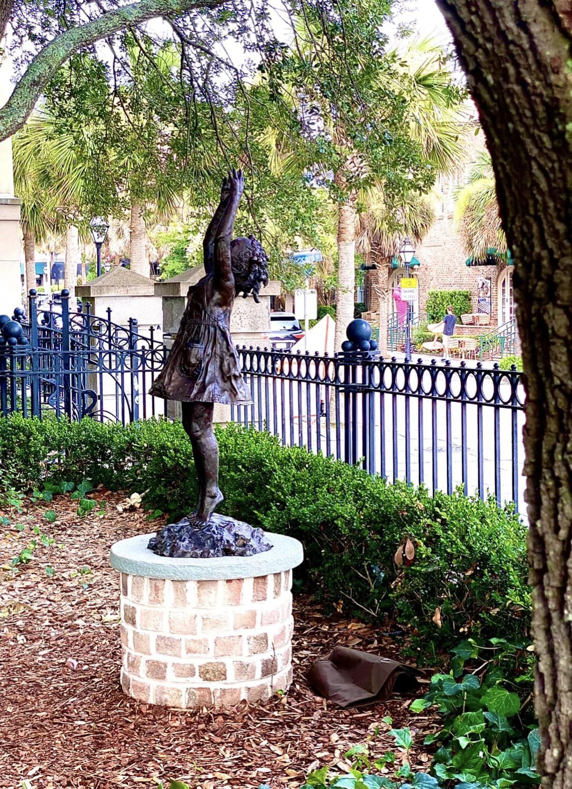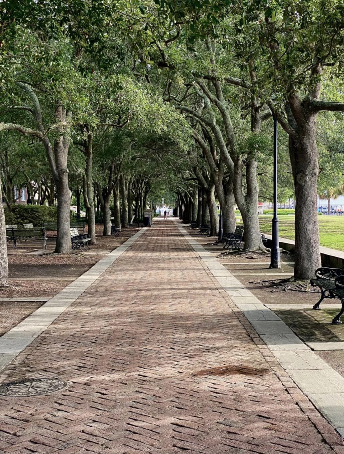 That’s when we happened upon a beautiful waterfront park with two water fountains and a walkway lined with live oaks.